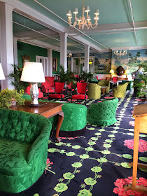 In addition to the porch, the main attraction for me was the interior design, all of which was renovated in 1977 by none other than the Dorothy Draper Company. However excited I was, the excitement was tempered by the knowledge that Dorothy Draper had died in 1969 and her loyal minion Carleton Varney was running the show at that point. While the firm still exuded a Draper-esque feel, I knew the minute I stepped in the door that it was not in fact Ms Draper that had done the work. All seemed an echo of her brilliance, but unmistakably affiliated with her.